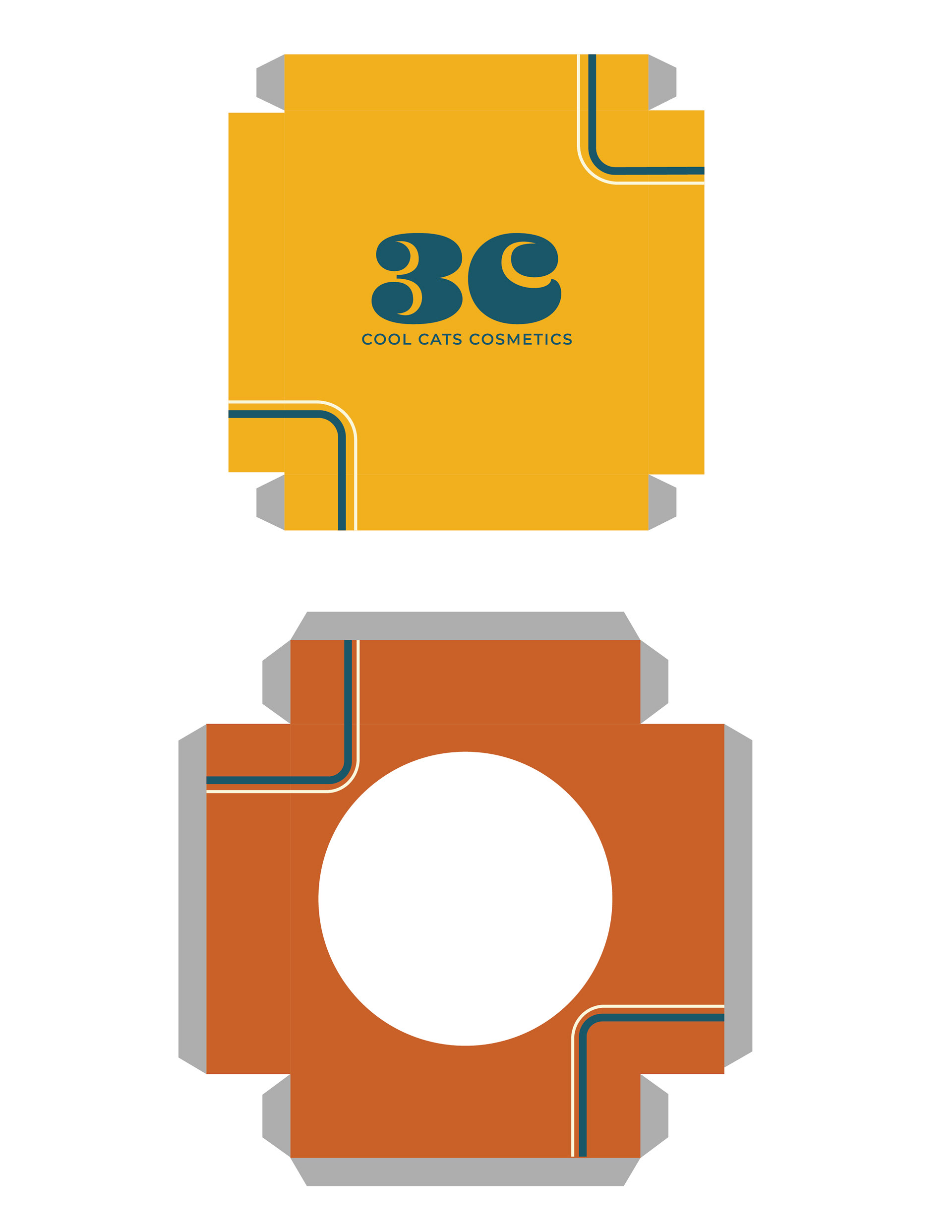 This project consisted of creating a collection that include different shapes and sizes of packaging. Exploring the balance of a unified brand with a variety of forms, a hypothetical cosmetics brand Cool Cats Cosmetics or 3C was designed and mocked up.